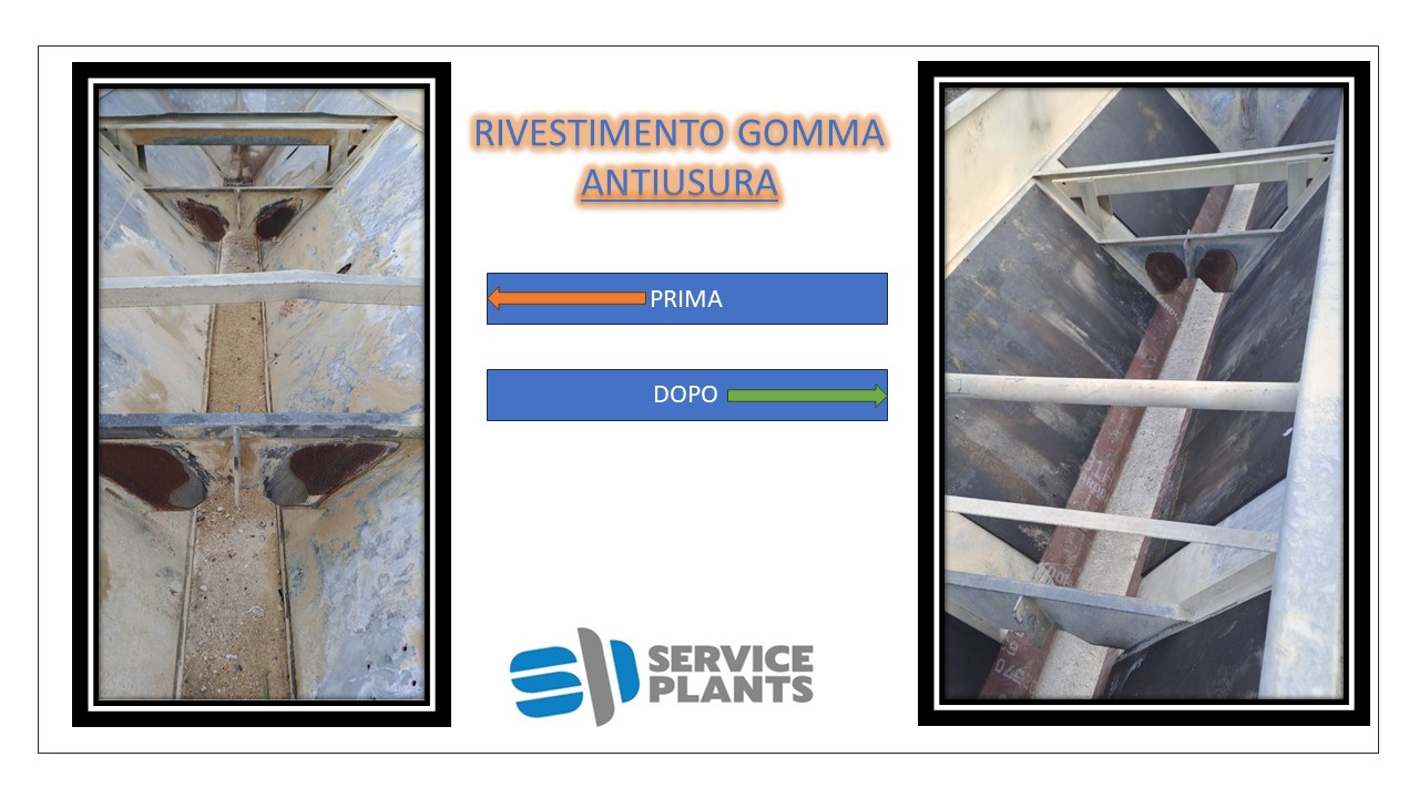 Manutenzione programmata, ordinaria e straordinaria, con installazione dei componenti nuovi dei migliori costruttori. Realizzazione immediata di piccole carpenterie, rulli di traino con relativa gommatura, rulli di coda, tramogge scarico nastri, piastre vibranti.